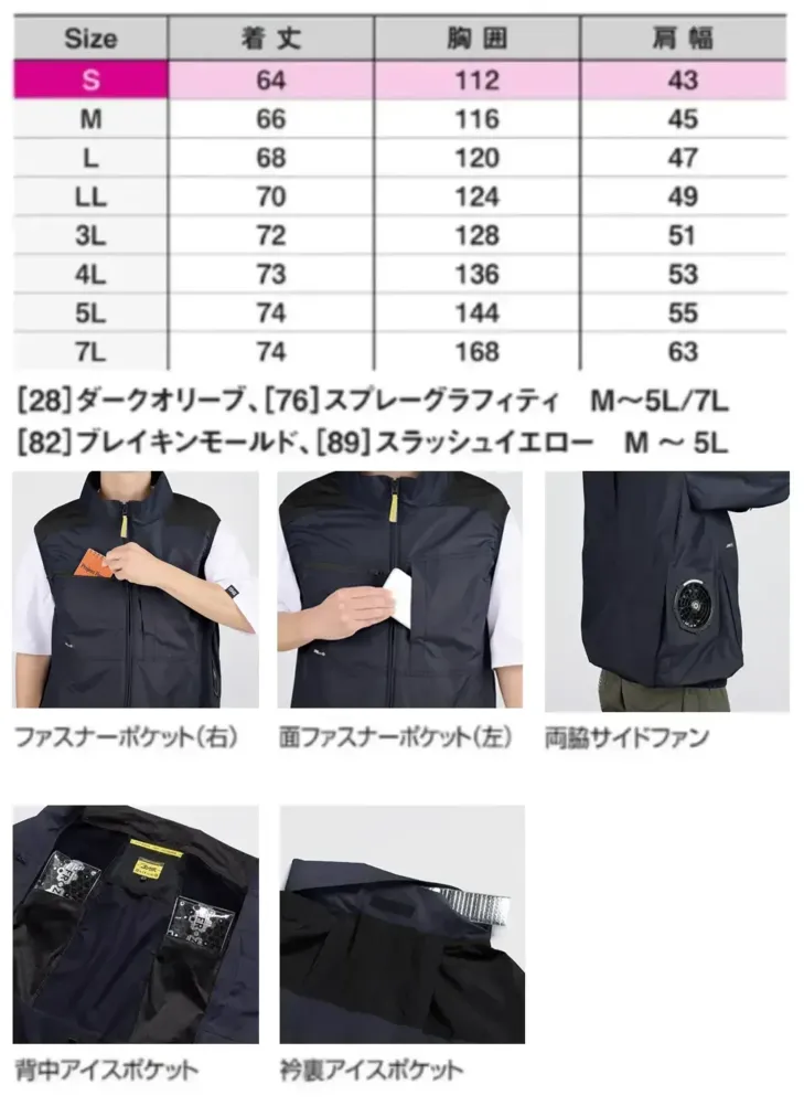 軽量な遮熱裏チタン素材をベースに快適性と実用性を高めた05612サイドファンベスト。遮熱ランクS35とUVカットUPF50+を備えワイドネック設計で首元から効率的に風を循環。保冷剤ポケット付きで熱中症対策にも配慮した新定番モデルです。