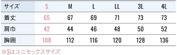 ・サイズ:S~4L(Sはユニセックスサイズ)