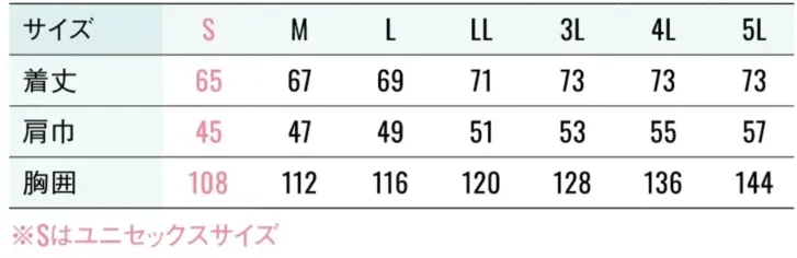 ベスト(ファン・バッテリー別売) 空調風神服KF92622のサイズ表