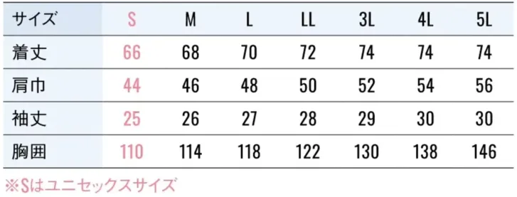 ・サイズ:S~5L(Sはユニセックスサイズ)