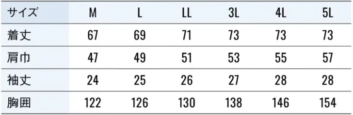 クールフィルター半袖ブルゾン(クールフィルター別売) 空調風神服KF92640のサイズ表