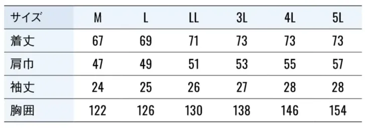 クールフィルター半袖ブルゾンセット 空調風神服KF92640Sのサイズ表