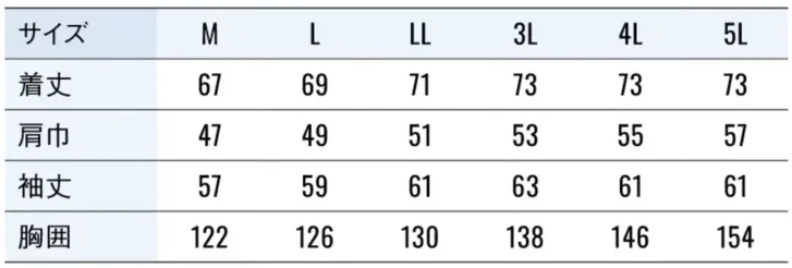 クールフィルター長袖ブルゾン(クールフィルター別売) 空調風神服KF92641のサイズ表