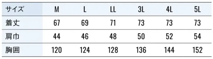 クールフィルターベスト(クールフィルター別売) 空調風神服KF92642のサイズ表