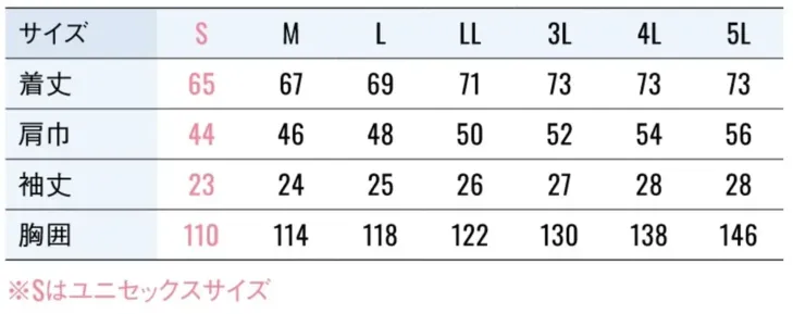 チタン加工半袖ブルゾン(ファン・バッテリー別売) 空調風神服KF96010のサイズ表