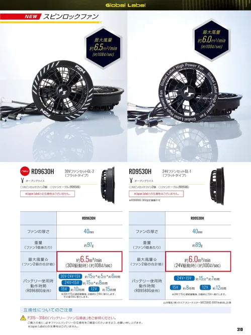 最大風量約6.5㎥/minという圧倒的な送風力を実現したGlobal Label対応のスピンロックファンです。30V駆動ならではのハイパワー性能で 空調ウェア史上クラスの風量を発揮。フラットタイプ設計により装着感にも配慮し 過酷な暑熱環境下での作業を強力に支えます。