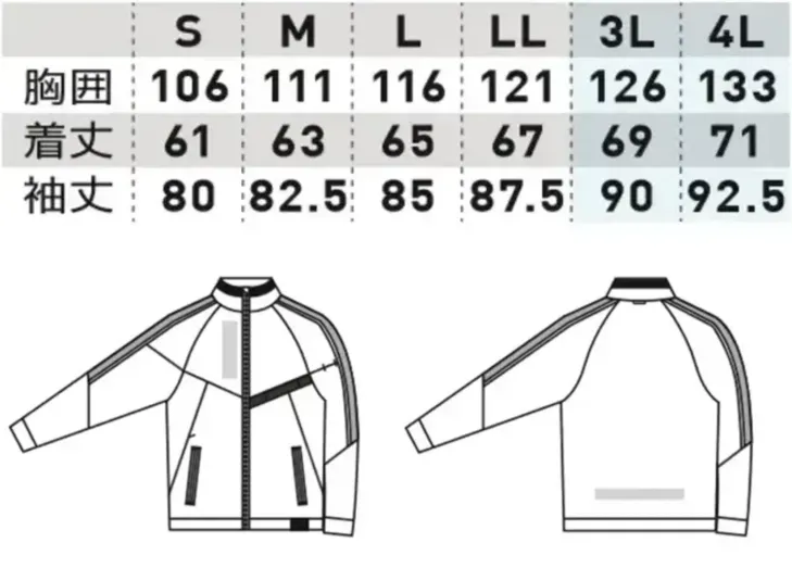 ■形状特長フロントファスナー|胸ポケット|両脇ポケット|左袖ペン差し|ラグランスリーブ|反射パイピング|デオドラントテープ|部分メッシュ
