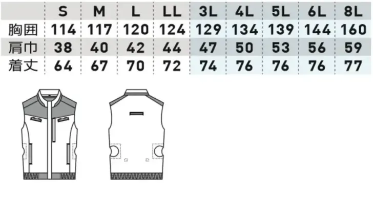 EFベスト(ファン・バッテリー別売) 桑和5349-06のサイズ表
