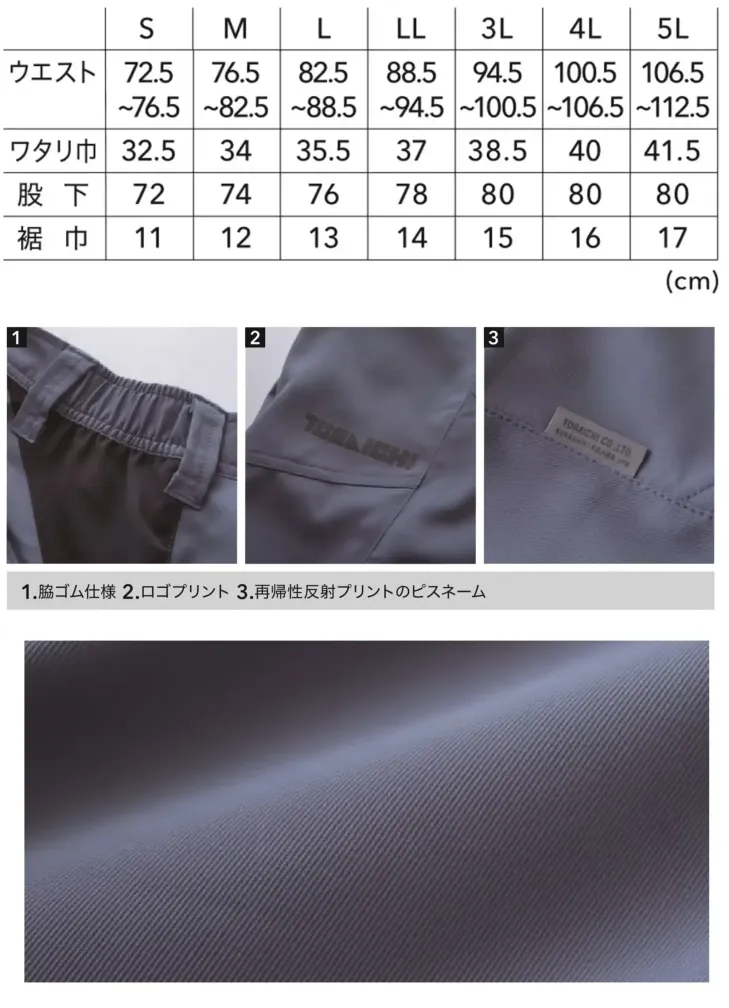 吸汗速乾性に優れたポリエステル100%素材を採用したサマーモデル。軽量かつストレッチ性を備え、両脇ゴムシャーリング仕様で快適なフィット感を実現。現場作業からデイリーまで軽快に動ける一本です。