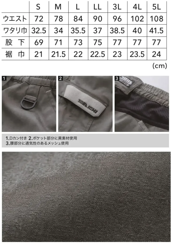 カーゴパンツ 寅壱2132-219のサイズ表