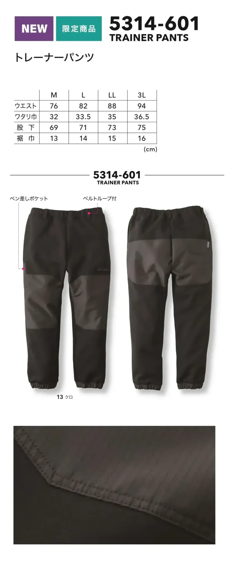 トレーナーパンツ 寅壱5314-601のサイズ表