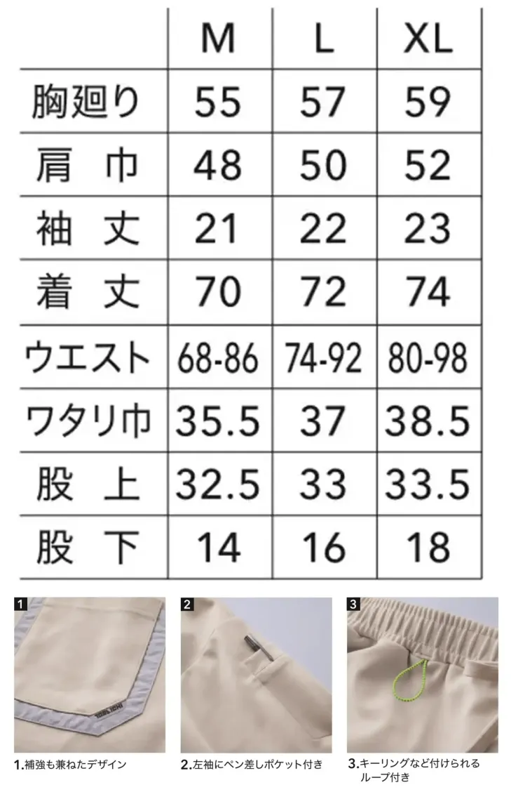 ■形状特長上下セット(半袖Tシャツ・ショートパンツ) 左袖ペン差しポケット パンツ脇差し込みポケット ループ付き ルーズシルエット