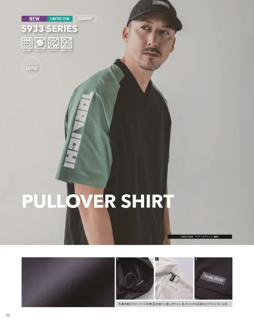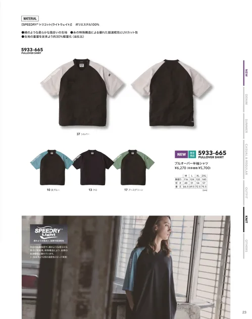 5933 SERIESの5933-665は、SPEEDRY®ライトトリコットを採用した限定ブルオーバー半袖シャツ。ポリエステル100%ながら綿のような柔らかさと優れた吸汗速乾性を実現。従来比約30%軽量化し、UVカット機能も備えたルーズシルエットのサマーモデルです。