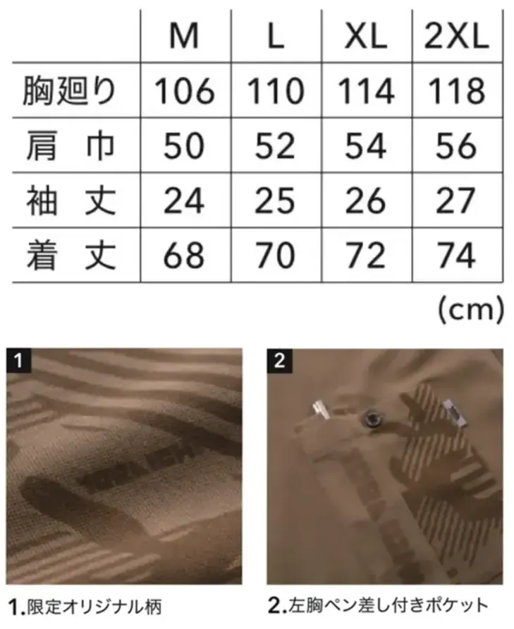 半袖クルーネックTシャツ 寅壱5995-618のサイズ表