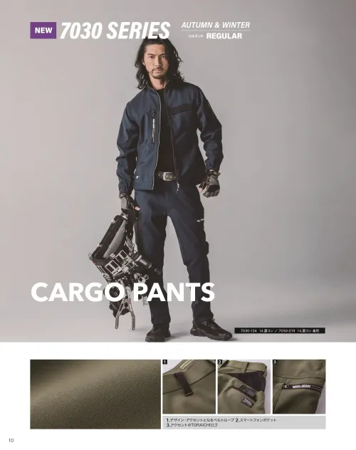 7030シリーズのカーゴジョガーパンツは、分子結合を強化したポリエステル素材でソフトな風合いと回復性を実現しました。制電・制菌・裏綿の3つの機能に加え、裾リブ仕様で動きやすさと快適な着心地を両立した作業パンツです。