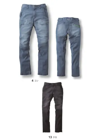 ・7ozストレッチデニムによる高い伸縮性でしゃがみ作業もスムーズ