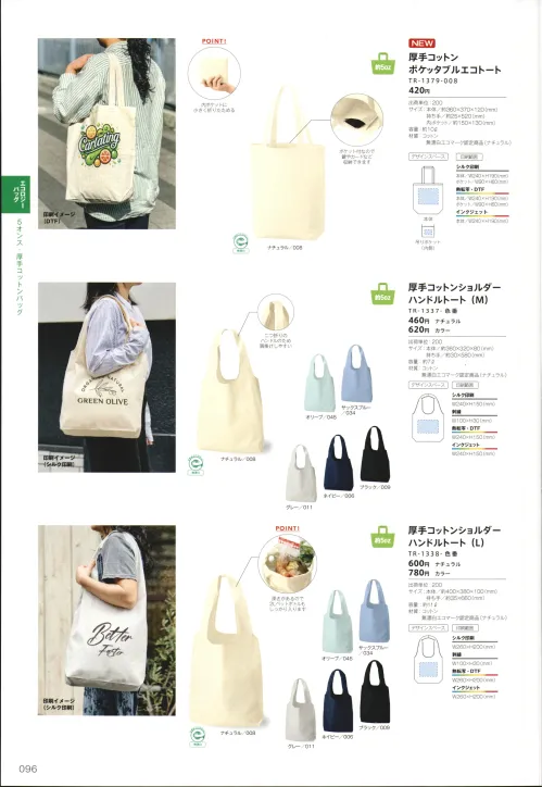 生地の目が詰まった5オンス。透けにくいので、展示会のカタログ配布や、デイリーのサブバッグにピッタリです。