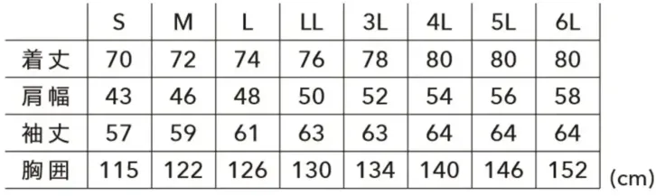 ニッカーズプルオーバーシャツ TS DESIGN55305のサイズ表