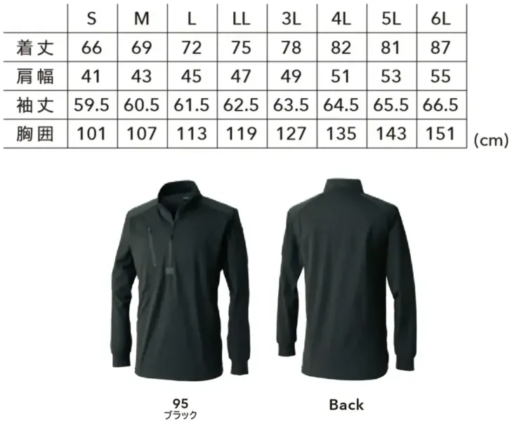 TS DEOドッツロングスリーブハーフジップ TS DESIGN85605のサイズ表