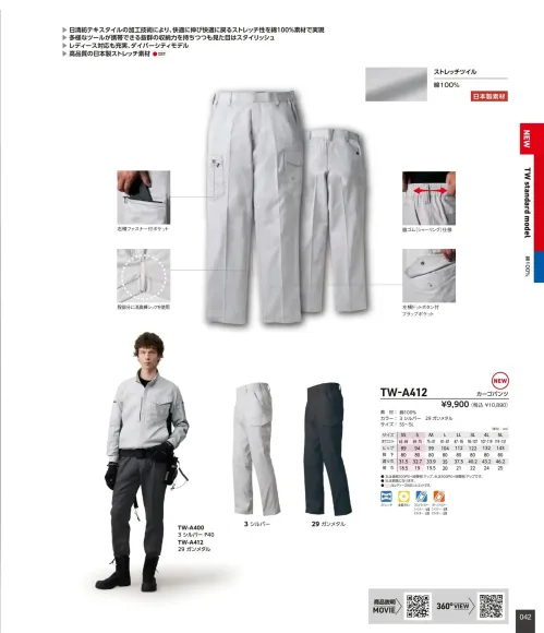 カーゴパンツ タカヤ商事TW-A412のサイズ表
