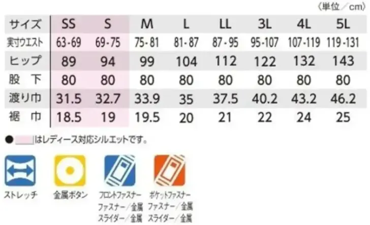 ■素材特長ストレッチ|日本製素材|金属パーツ