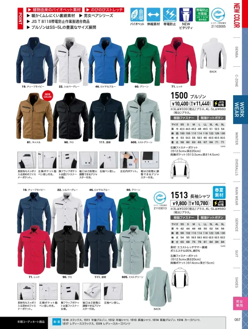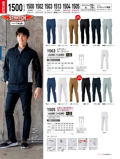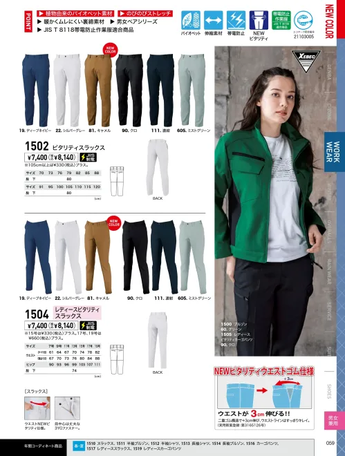 レディスピタリティラットズボン ジーベック1505のサイズ表