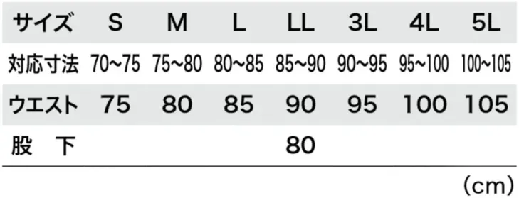カーゴパンツ ジーベック2856のサイズ表