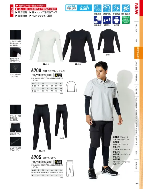 ■素材特長接触冷感(Q-max値0.387)|吸汗速乾|全面消臭|帯電防止(JIS T 8118適合)|紫外線カット