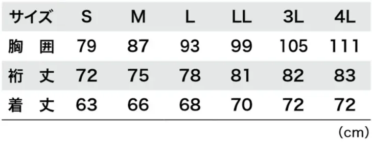 長袖コンプレッション ジーベック6700のサイズ表