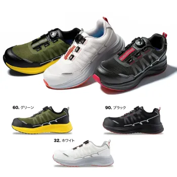 調整が簡単なダイヤル調整システムを搭載したミッドカットタイプの安全スニーカー。軽量設計とクッション性に優れたEVAミッドソールにより足への負担を軽減し、通気性の高いメッシュ素材で快適な履き心地を実現。現場での着脱やフィット調整もスムーズに行えます。