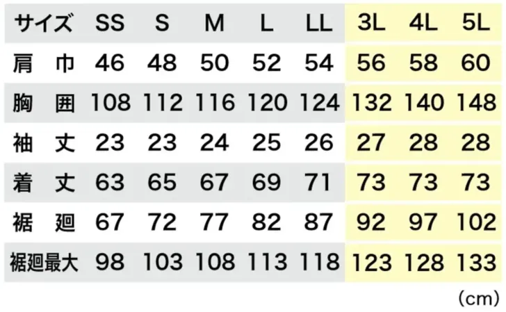 空調服®半袖ブルゾン(ファン・バッテリー別売) 空調服(ジーベック)XE98038のサイズ表