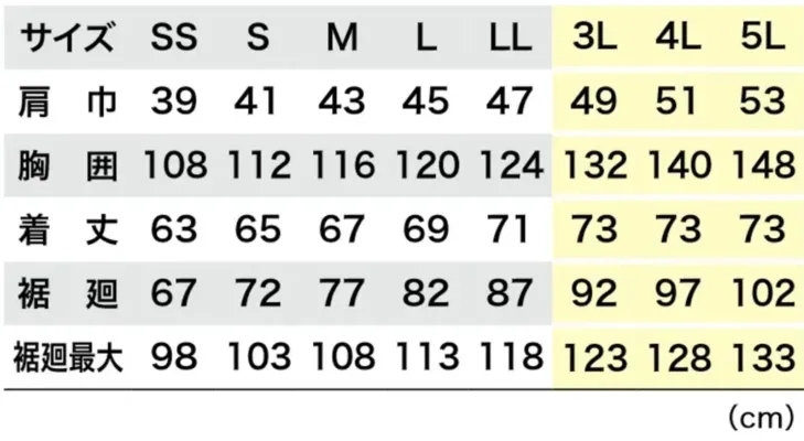 空調服®ベスト(ファン・バッテリー別売) 空調服(ジーベック)XE98039のサイズ表