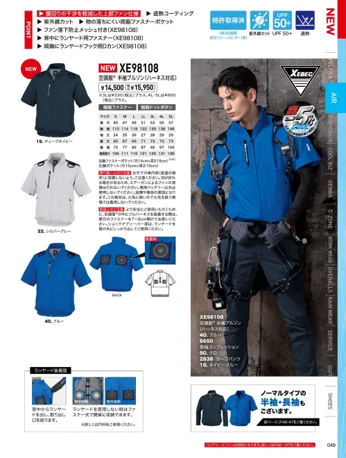 XE98108 空調服® 半袖ブルゾン(ハーネス対応)