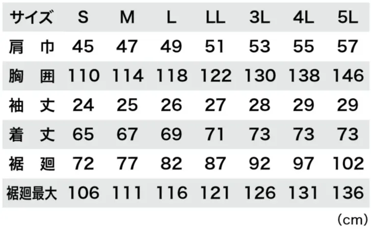 空調服®半袖ブルゾン(ハーネス対応)ファン・バッテリー別売 空調服(ジーベック)XE98108のサイズ表